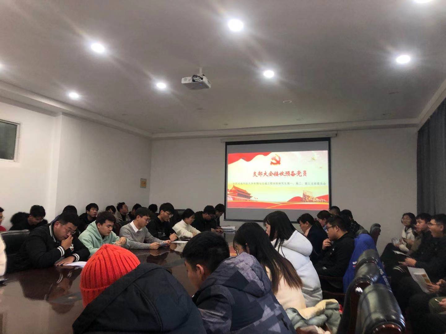 会议开始,由研究生第二党支部书记王运玲介绍本次大会的主要内容并宣布会议开始。根据大会议程,会议首先全体起立唱国际歌,然后由研究生第二党支部书记王运玲介绍发展对象基本情况。发展对象依次宣读入党志愿,汇报自己对党的认识,陈述入党动机及自身表现,主要优缺点及需向党组织说明的有关问题。随后由入党介绍人根据发展对象的了解,分别总结各位发展对象的表现,说明对申请人的介绍理由和考察情况,表明了自己的意见。最后经支部党员充分讨论,举手表决,是否同意韩冰等16名发展对象发展为中共预备党员。韩冰等16名发展对象得到研究生党支部大会的一致认可,研究生党支部决定正式接收他们为中共预备党员。