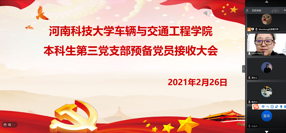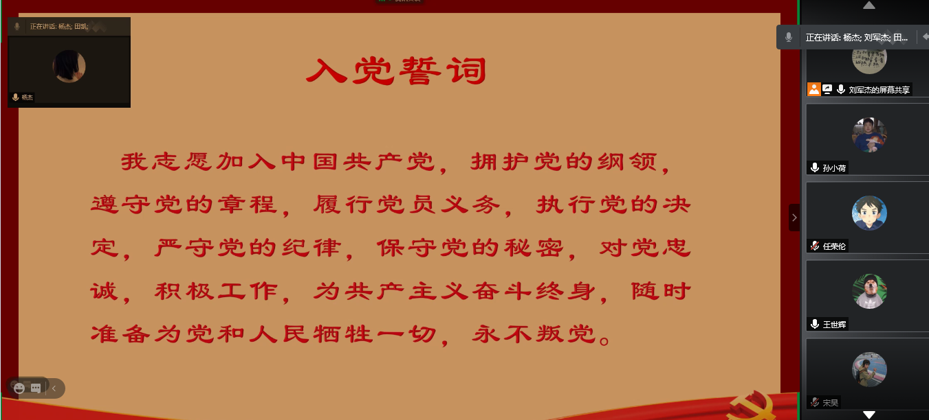 研究生三个党支部和本科生第三党支部分别在线上召开党员大会,接收34名预备党员。会议分别由四个学生党支部书记主持。