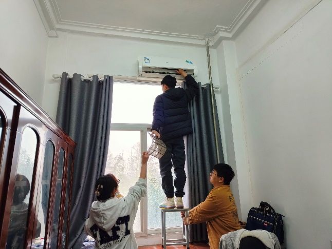 为践行党的二十大精神,激励广大青年学生投身火热实践、绽放青春之花,发挥学生党员的示范引领作用。3月20日,本科生第七党支部开展了 “我为师生办实事”------空调清洁志愿服务活动,本次活动由党支部书记李艳红组织,党支部全体党员参加。