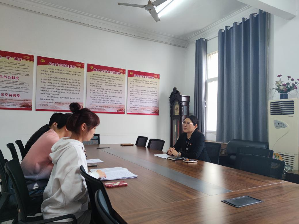 田志红首先对6名积极向党组织靠拢、被党组织吸收为中共预备党员的学生表示祝贺,并进行了面对面谈心谈话。谈话内容除了解发展对象入党动机、对党的性质与宗旨、党员权利与义务、党史知识掌握程度外,还询问了6名毕业生预备党员的专业学习情况、毕业答辩准备情况、就业情况、来自身边党员的影响、对全心全意为人民服务的理解、自身存在不足以及改进措施等。谈话中,田志红对6名毕业生预备党员提出了三点要求:一是要加强党史学习教育,坚定理想信念;二是高标准严要求,做合格党员;三是要树良好形象,做疫情防控和文明离校的表率。