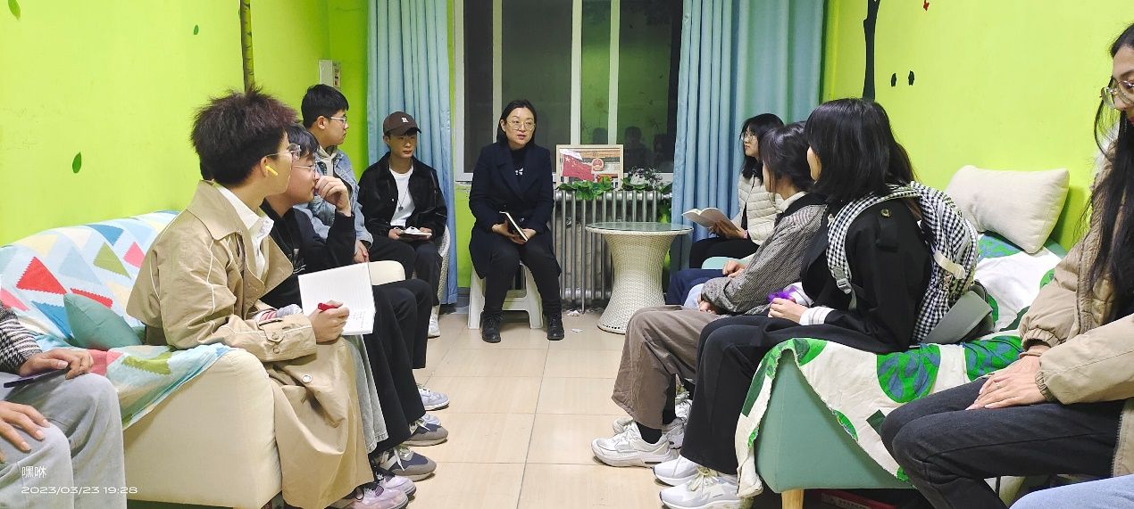 学工办副主任兼21级辅导员董文铮老师在西苑校区2号楼107室开展了团体心理辅导。院心理健康部大一、大二全体成员参加。