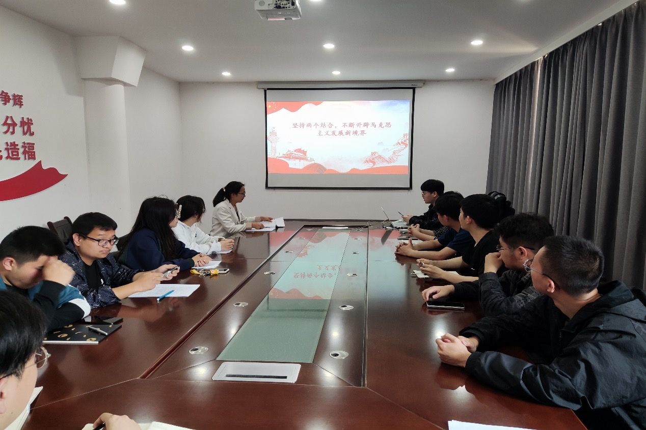 各党支部运用“支部书记带头讲、支部委员带头学”的形式学习研讨习近平总书记在主题教育工作会议上发表的重要讲话。本科生第三党支部书记董文铮分别从重要意义、十二字总要求、具体部署三方面解读习近平总书记在主题教育工作会议的重要讲话精神;本科生第七党支部书记李艳红为支部党员讲授《坚持两个结合,不断开辟马克思主义发展新境界》专题党课。