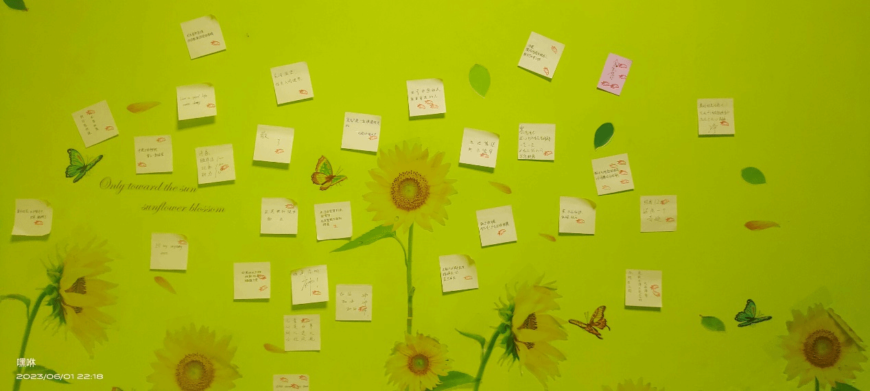心理健康部在2号楼107举办了“青春夏日墙”便签交流活动。