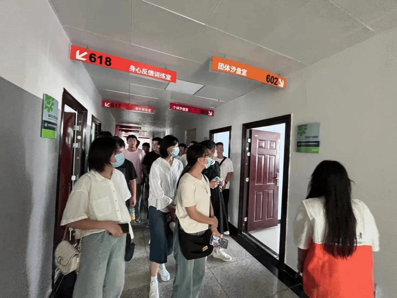 开元校区医科6号楼参观校心理健康中心,通过实地参观和“向阳花使者”服务团的讲解,同学们了解了心理健康中心的分区布局和各个教室的职能,强化了同学们维护心理健康的意识。