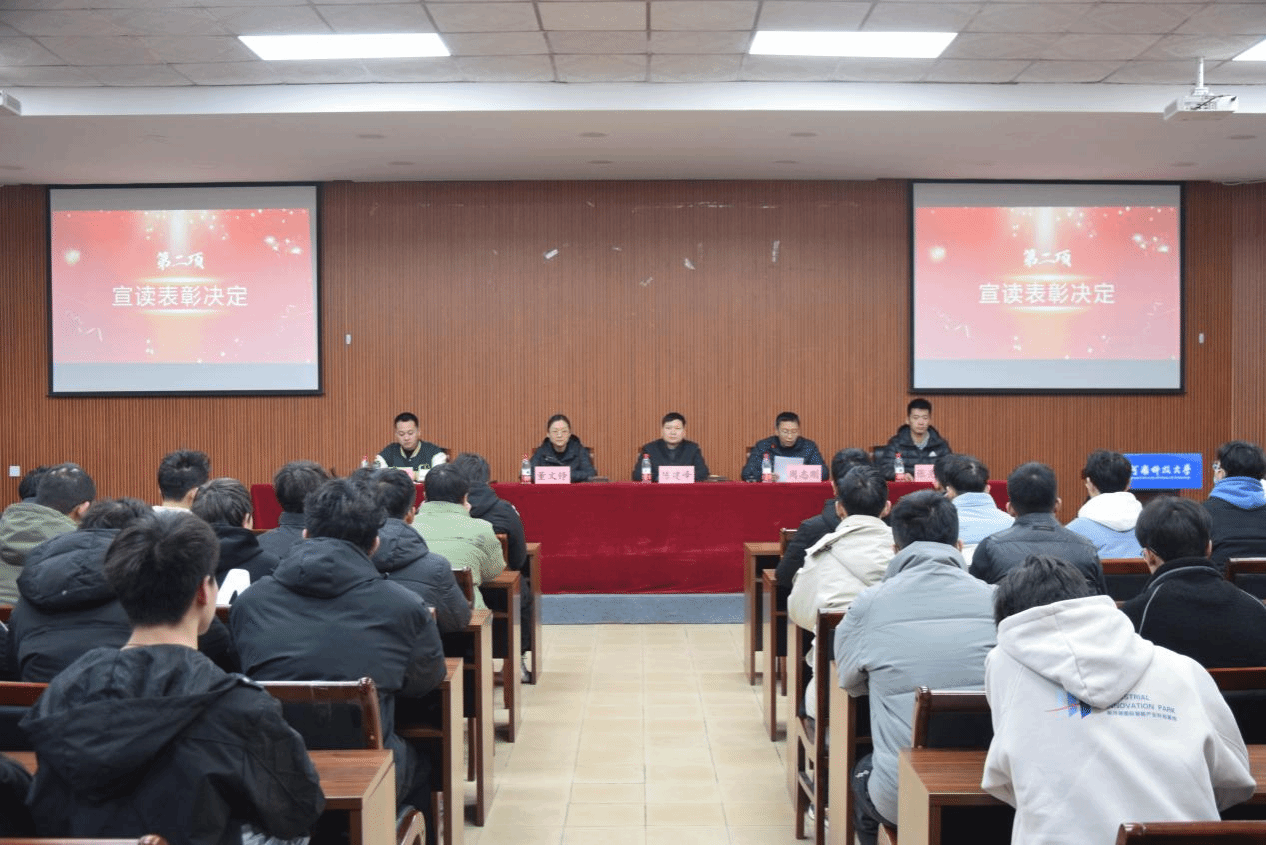 周志刚宣读关于表彰在2023年学风建设活动中表现突出的优秀集体和先进个人决定。董文铮宣读关于表彰2023年在各类竞赛中获得优异成绩的优秀团队和先进个人决定。