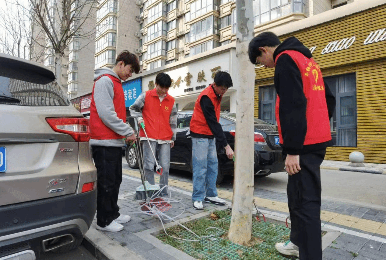青协负责人李战带队。志愿者们在社区工作人员的安排下分为两组,他们各持工具,于街道两旁清扫垃圾,为每棵树木浇水,并细心拔除杂草。活动过程非常轻松愉快,志愿者们在丰富课余生活的同时,也享受着柔和的春光、感受着蓬勃的自然生命力。清理之后的社区焕然一新,更加与春日相衬。志愿者们青春洋溢,热情地投入到活动中,体现了青年志愿者们认真奉献的优秀品格。