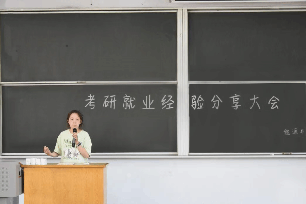 2024届4名优秀毕业生代表向同学们讲述自己考研和就业的相关经验。2021级学生代表200余人参加分享会。