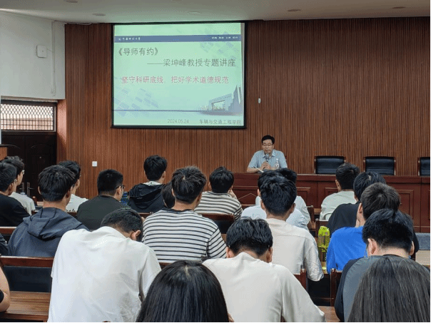 梁坤峰教授分享了自己的科研经历,并巧妙地将这些经历与国家在创新领域的重大时事问题相结合,对此进行了深入细致的分析和探讨。他强调,当代研究生作为科研队伍的重要组成部分,应当积极响应时代的号召,为营造有利于创新的环境和氛围贡献自己的力量。他表示,在科研实践中,必须坚定不移地捍卫科研诚信的基石,任何形式的学术不端都是对学术纯洁性和道德底线的公然践踏。他希望加强学术道德的教育和培训,使科研人员深刻理解学术规范的重要性,增强维护学术规范的责任感和使命感,从而自觉抵制学术不端行为,共同营造一个风清气正的学术环境。