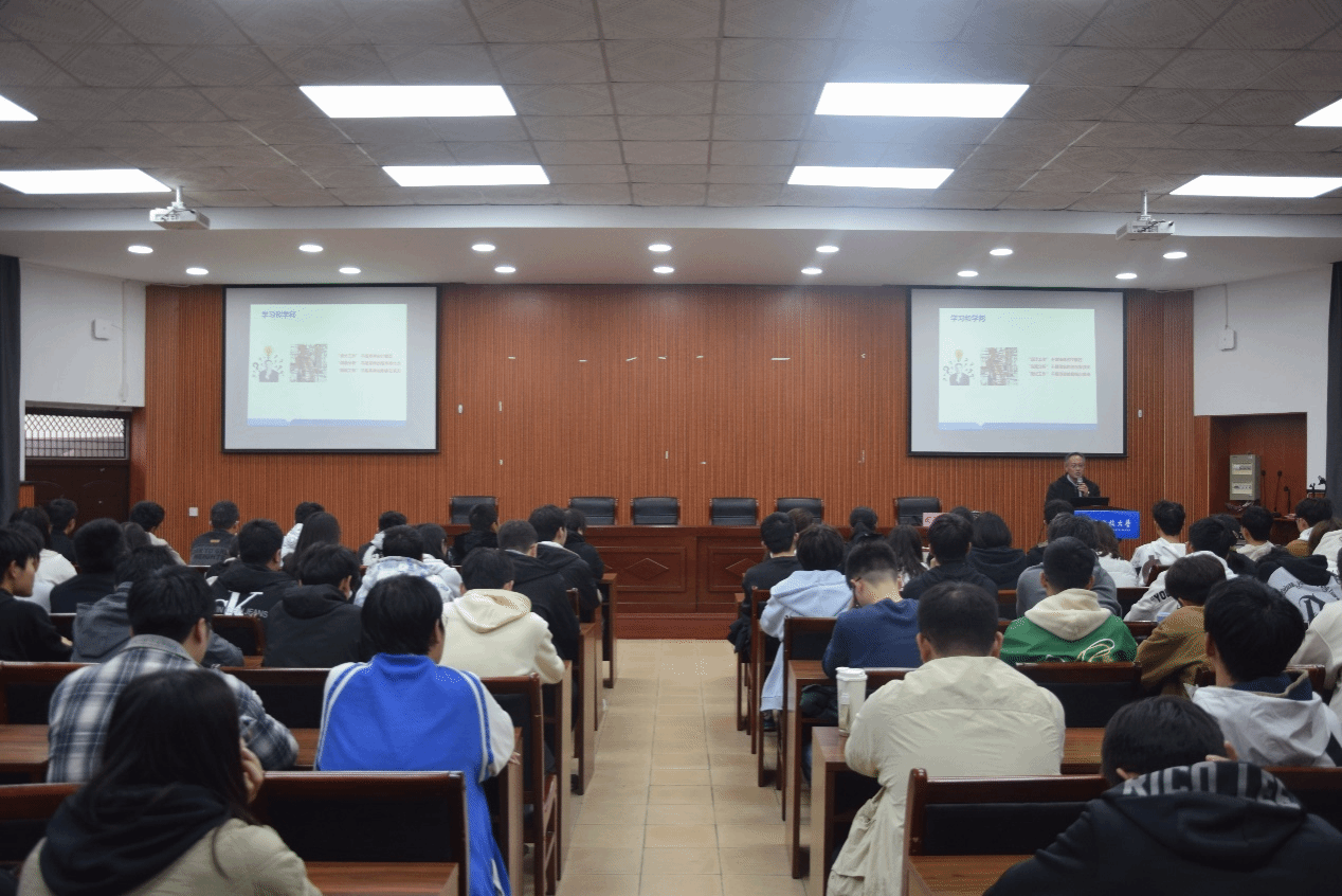 学生做“从学生到工程师的重要转变”专题讲座,讲座由赏金猎人游戏