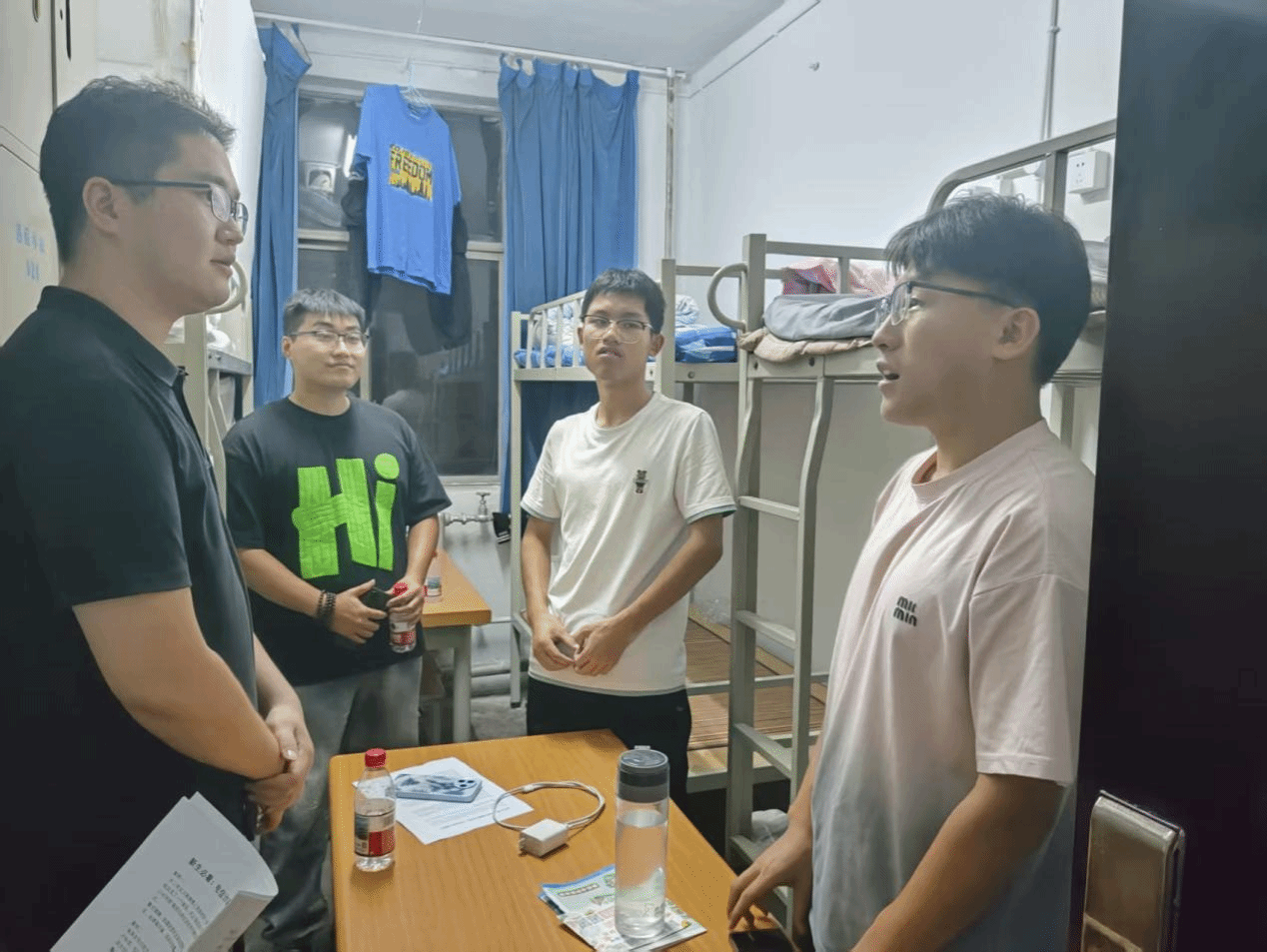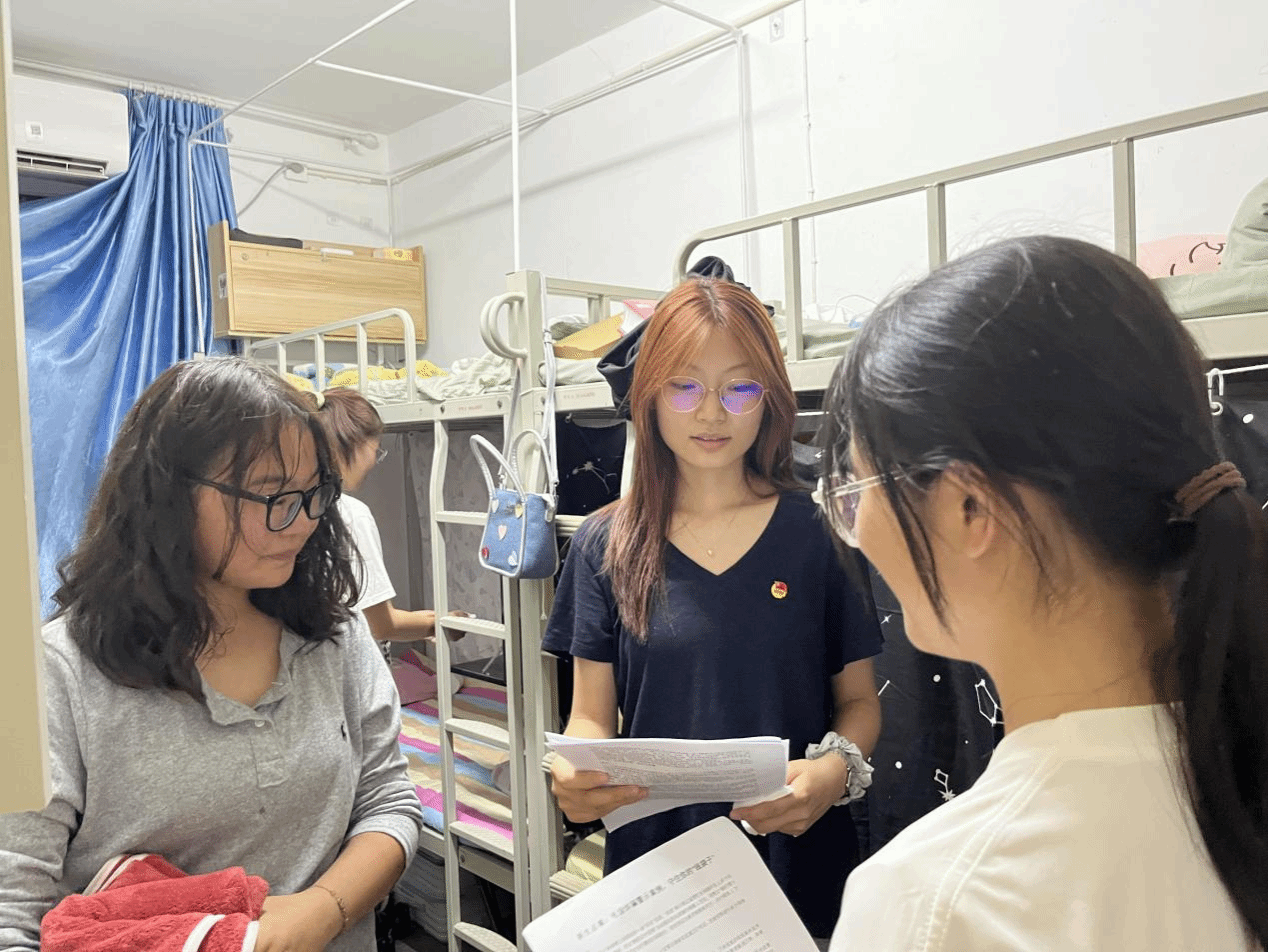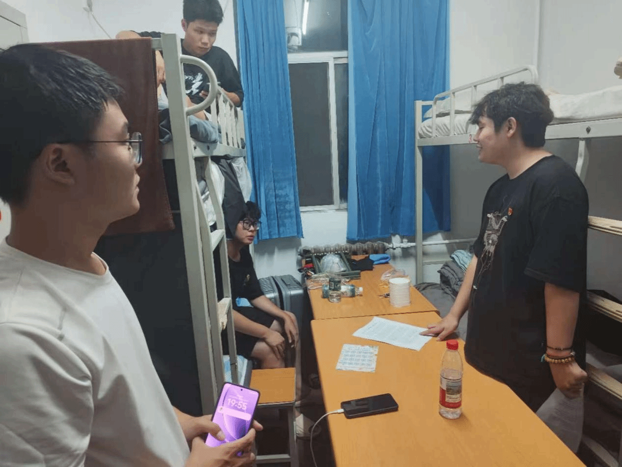 9 月 13 日晚,2025 级辅导员王志带领党员志愿者开展 “面对面” 寝室走访活动。