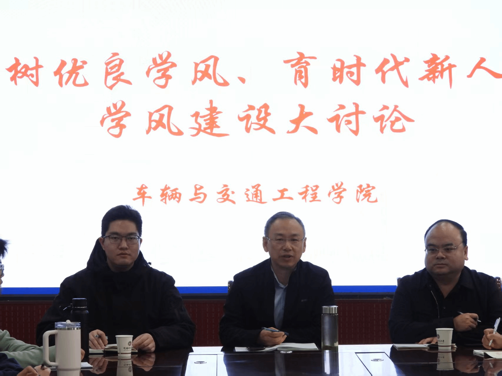 党委书记冯飞、学业导师张帅、2025级本科生辅导员王志以及车辆252班全体同学参与此次研讨会。