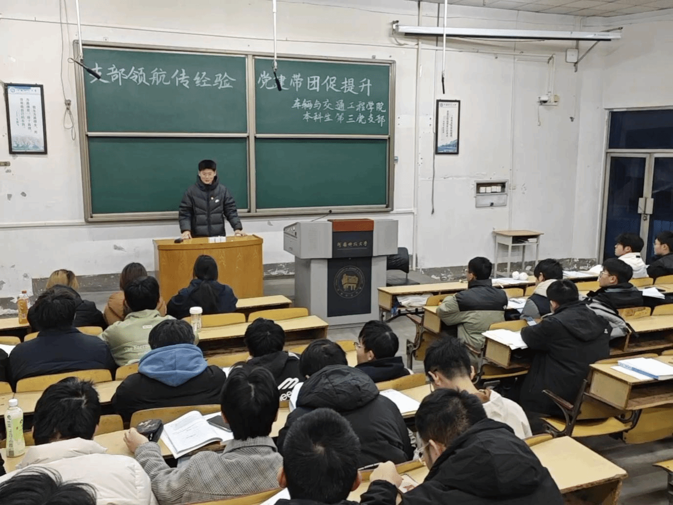 本科生第三党支部在6号楼301、302教室同步开展“支部领航传经验,党建带团促提升”主题分享活动。党支部优秀党员代表高奥鹏、谭延硕、刘子谦担任分享嘉宾,2025级智能车辆工程、智能运输工程专业全体新生参与活动。