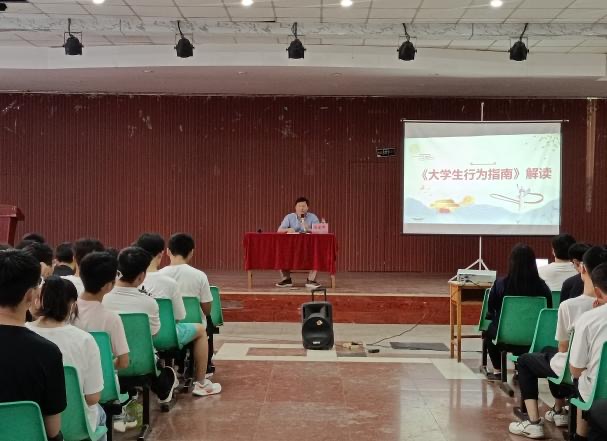 党委副书记陈建峰在西苑校区大学生活动中心组织2022级新生开展了《大学生行为指南》解读活动。