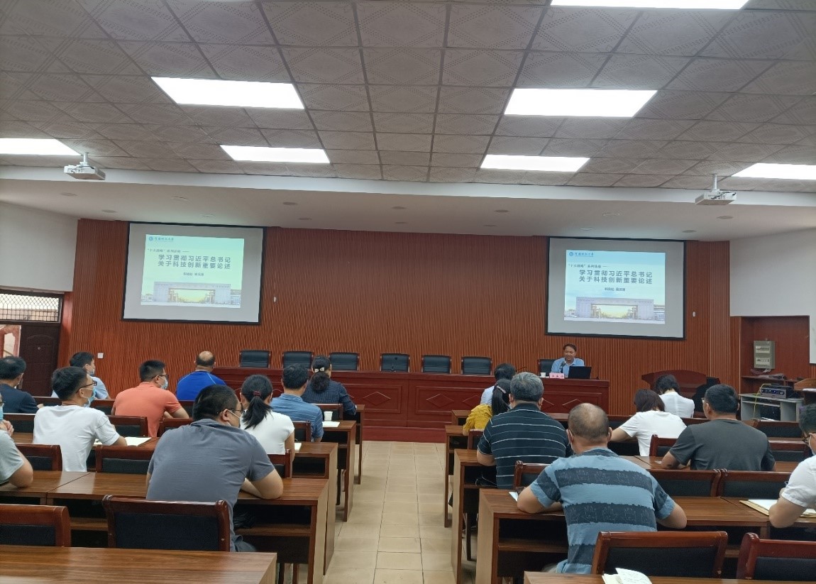 在西苑校区6号楼101会议室举办“十大战略”专题讲座。科技处处长吴庆涛应邀作题为《学习贯彻习近平总书记关于科技创新重要论述》专题讲座。科技处一行8人和赏金猎人游戏