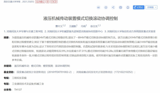 6 液压机械传动装置模式切换滚动协调控制-西安交通大学学报