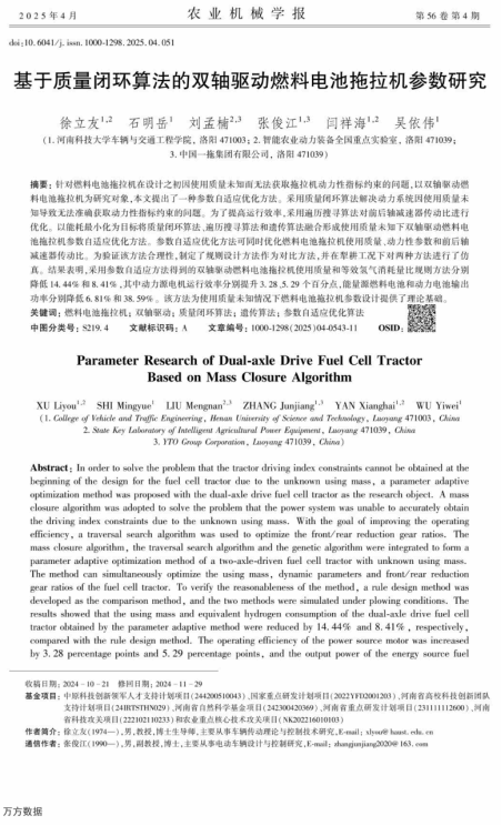 15 基于质量闭环算法的双轴驱动燃料电池拖拉机参数研究-农业机械