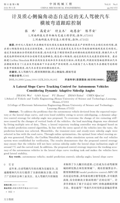 14 计及质心侧偏角动态自适应的无人驾驶汽车横坡弯道跟踪控制-中
