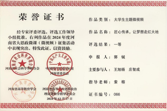 (4)2024 年度河南省大思政微课(微视频)大学生主题微视频一等奖