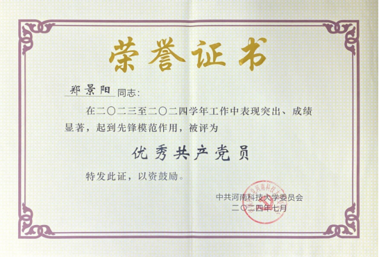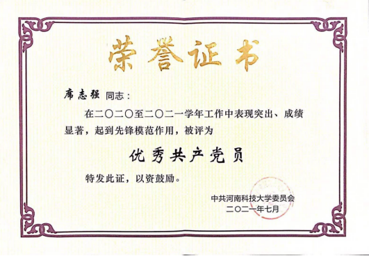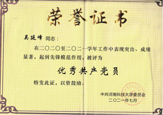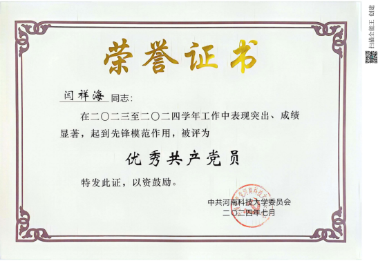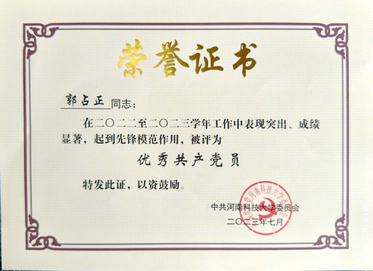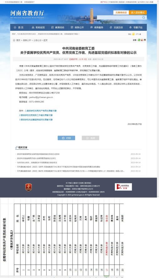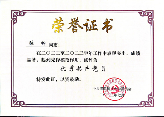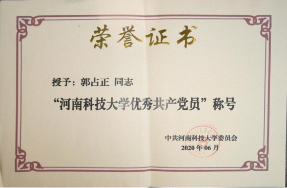 优秀共产党员”荣誉称号;3 人次获“河南科