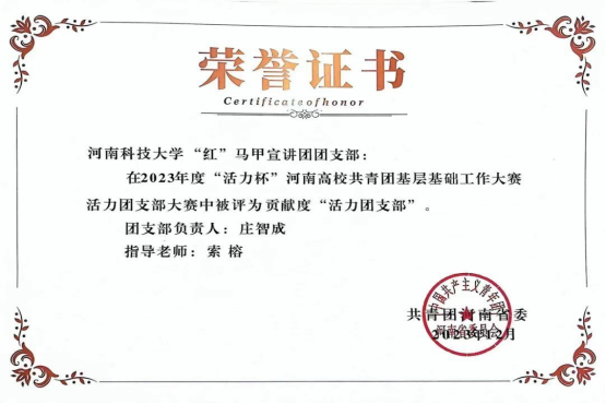 (3)2023 年度河南省高校共青团基层基础工作大赛活力团支部大赛“活力团支部”称号